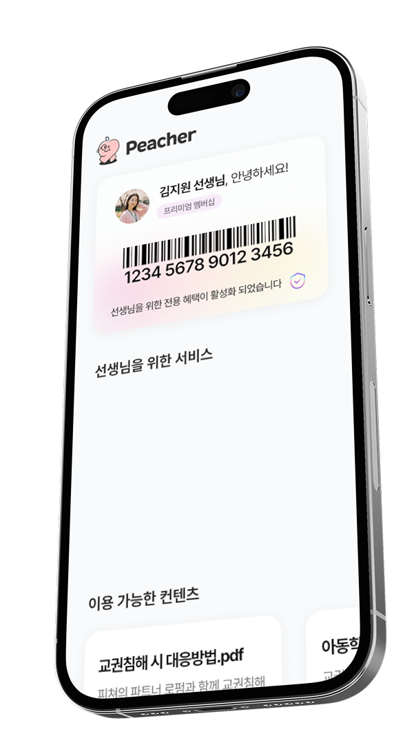 교사하면서 이런 일이 일어날 줄 몰랐는데, 학부모가 아동학대 신고를 할 것만 같은 상황처럼 저를 몰아가는 일이 최근에 많았습니다. 저는 정말 두려웠고, 어떻게 대응해야할 지 몰라서 피쳐에 연락했습니다. 피쳐 교권보호팀으로부터 상담을 받을 수 있었고, 어떻게 대응해나가야 할지 알려주셨던 솔루션을 통해서 상황을 정리하고 차분하게 대응해나갈 수 있었습니다. 어떤 자료보다 자세했고 실제적인 해결책을 담고 있어서 좋았습니다. 감사합니다^^